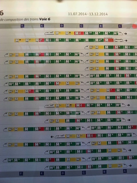 Ok, agora você já sabe qual a sua plataforma, mas você está cheio de malas e não tem tanto tempo para achar seu vagão na hora de embarcar (os trens param em média só 3-4 minutos nas estações).