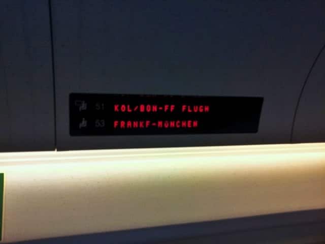 Um dos assentos reservado de Köln/Bonn até Frankfurt (FF) Flughafen (aeroporto) e o outro assento reservado de Frankfurt até München (Munique).Um dos assentos reservados de Köln/Bonn até Frankfurt (FF) Flughafen (aeroporto) e o outro assento reservado de Frankfurt até München (Munique).
